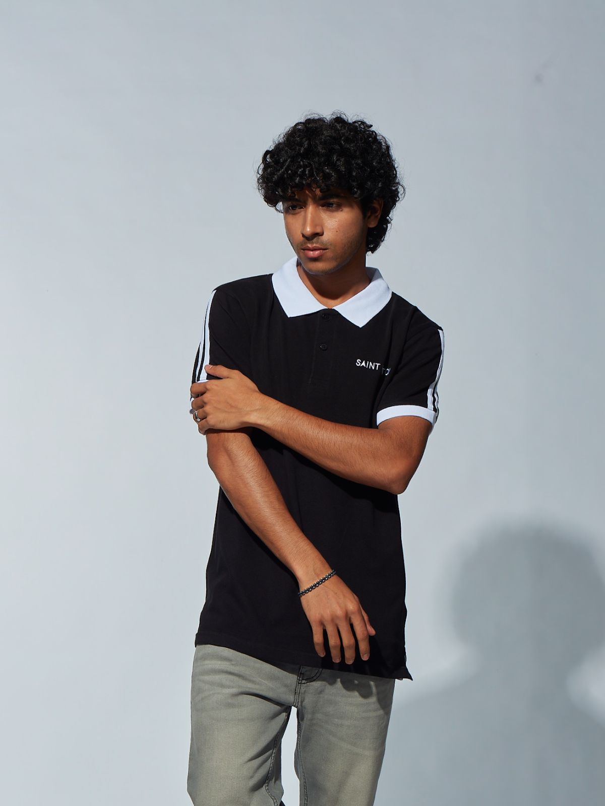 MENS CUT & SEW POLO T-SHIRT – SB PIQUE CN – BLACK NET FOLDED